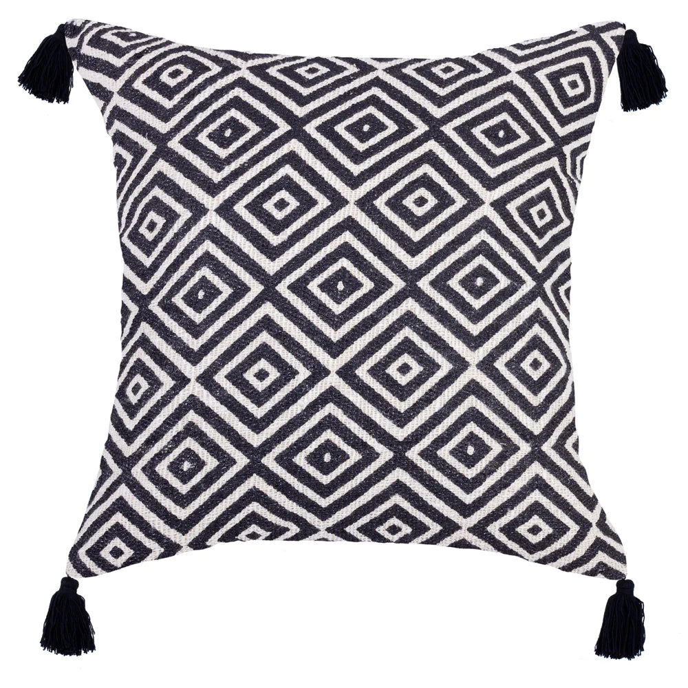 A Capa de Almofada Diamond Eye é feita de algodão puro tecido à mão, com borlas cosida à mão e completada com um design tipicamente cultural.